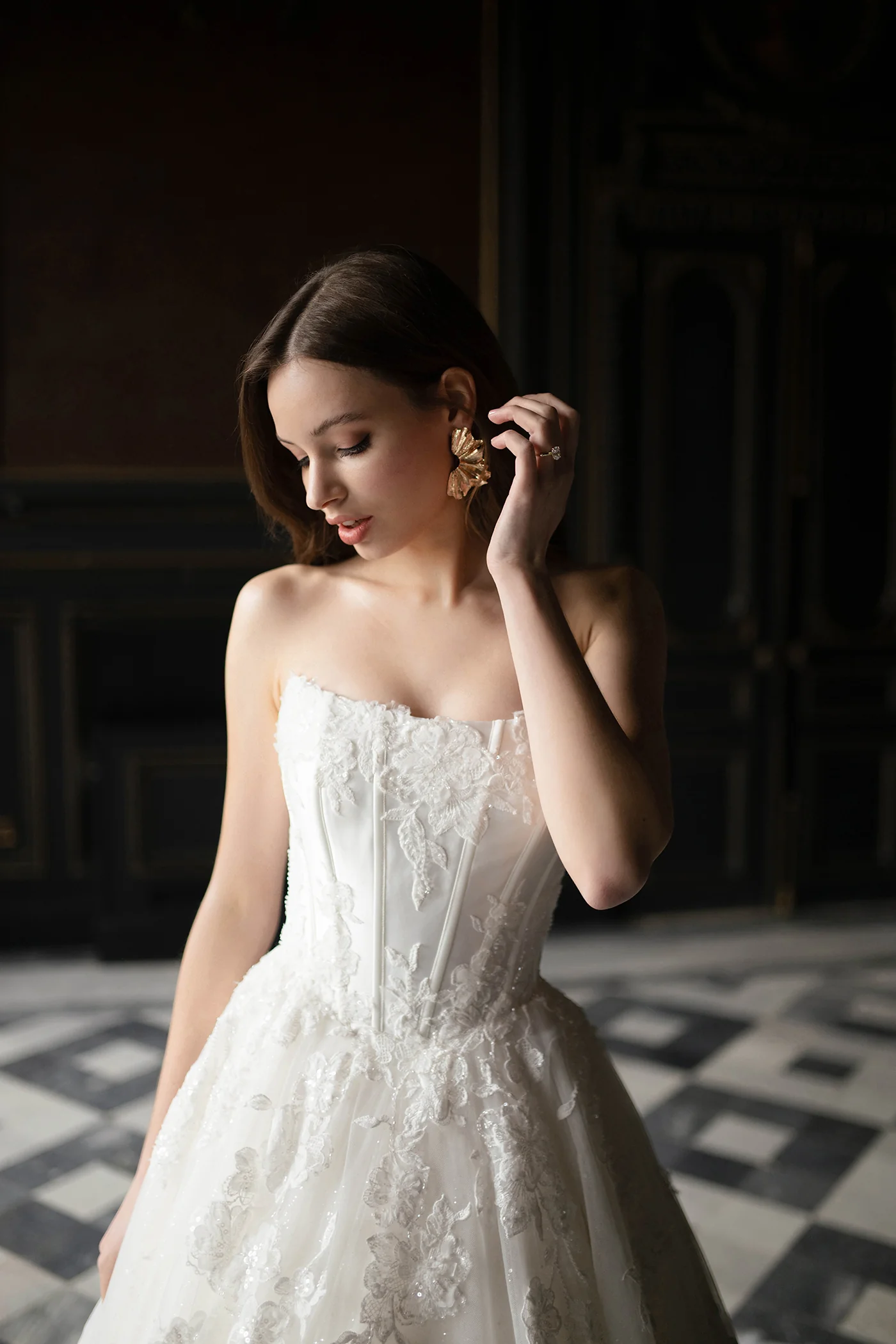 Style 6252niloofar2025-12-26T20:47:41+00:00 Project Description The ball gown wedding dress has an illusion bodice with fl oral lace appliqué, sheer long sleeves, and a sweetheart neckline on a satin skirt. Share This Story, Choose Your Platform! FacebookTwitterPinterestEmail Related Projects Style 30140 Style 80152 Style 80154