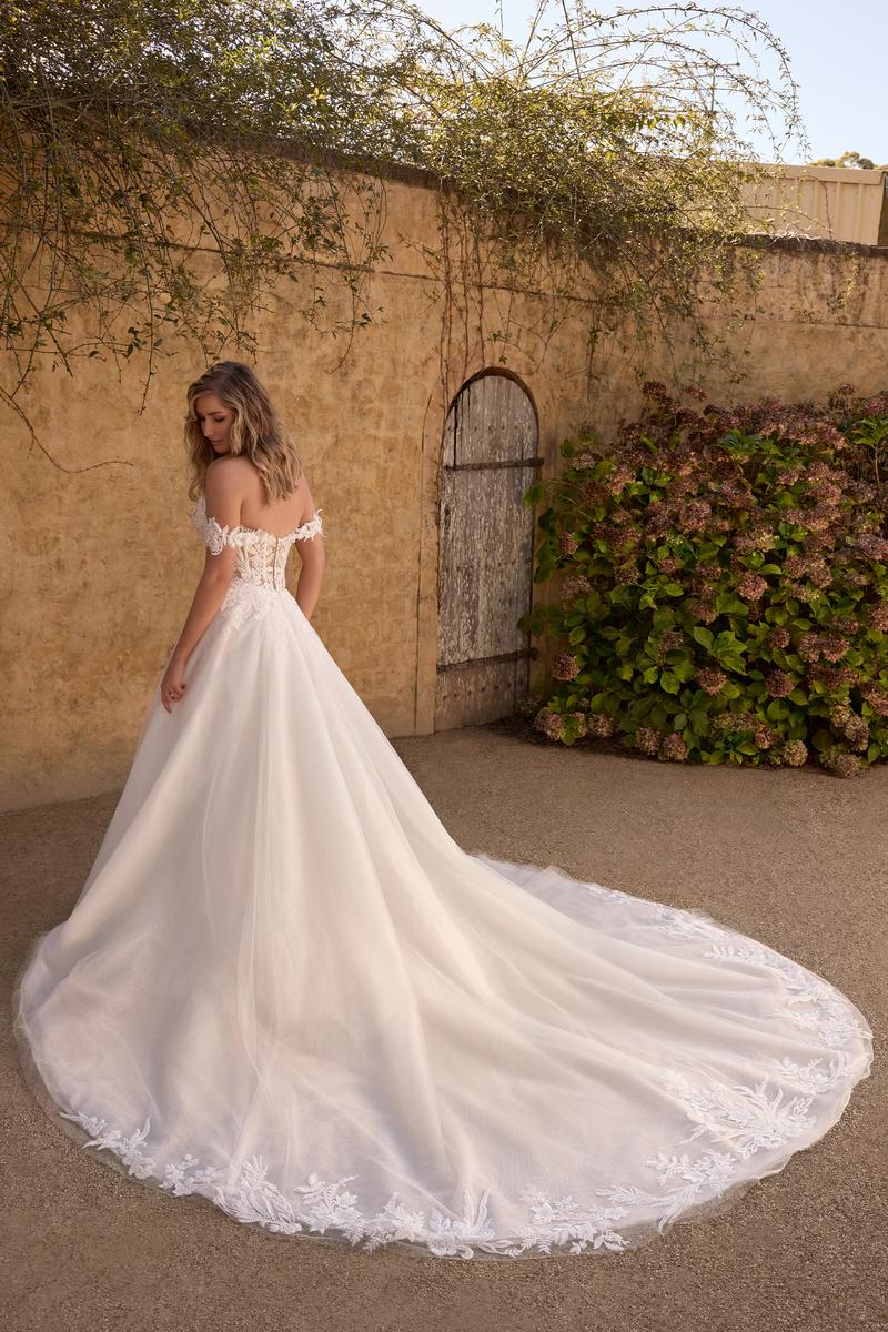 Glamorous Ball Gown with deep V-Neckline detailed in lace and tulle.